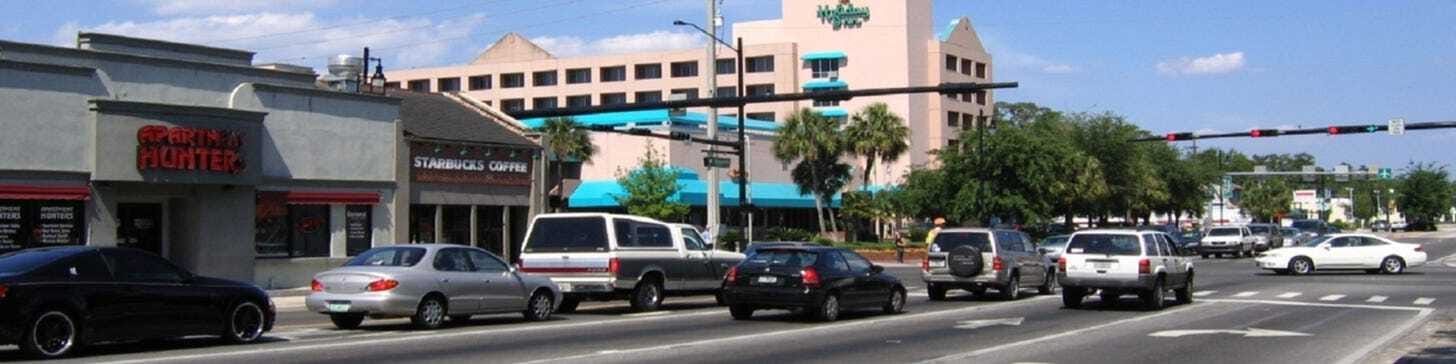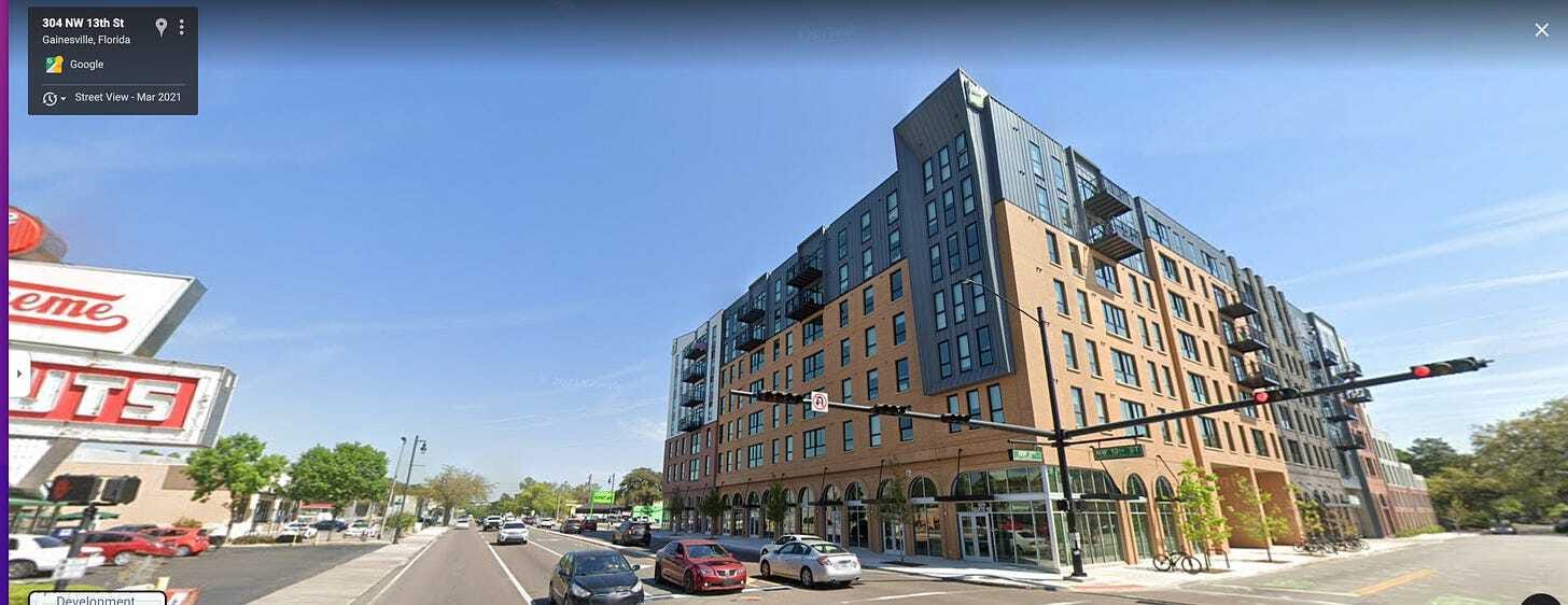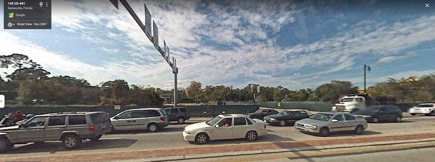 We’re going to have some fun with before and after pictures of the city I currently live in, Gainesville, Florida. Gainesville is a lovely place to live. That’s why I live here. The city has also changed a lot since I was here last in 2007. My memory’s a bit foggy at times, but thankfully Google Map has a handy tool that can show you what a place used to look like. In Gainesville, some of the long time residents who are also at times very vocal will bemoan the loss of character here that has supposedly come with the rise of bigger housing and mixed used buildings. Let’s see what was lost and gained. One quick note that’s relevant though: Gainesville’s 2000 population was 95,447, 2010 population was 124,354, and 2020 population was 141,085. The city is growing rapidly and will continue to do so if historical trends hold.