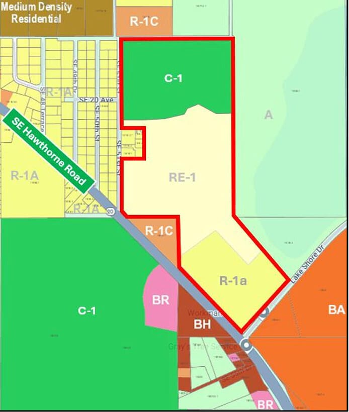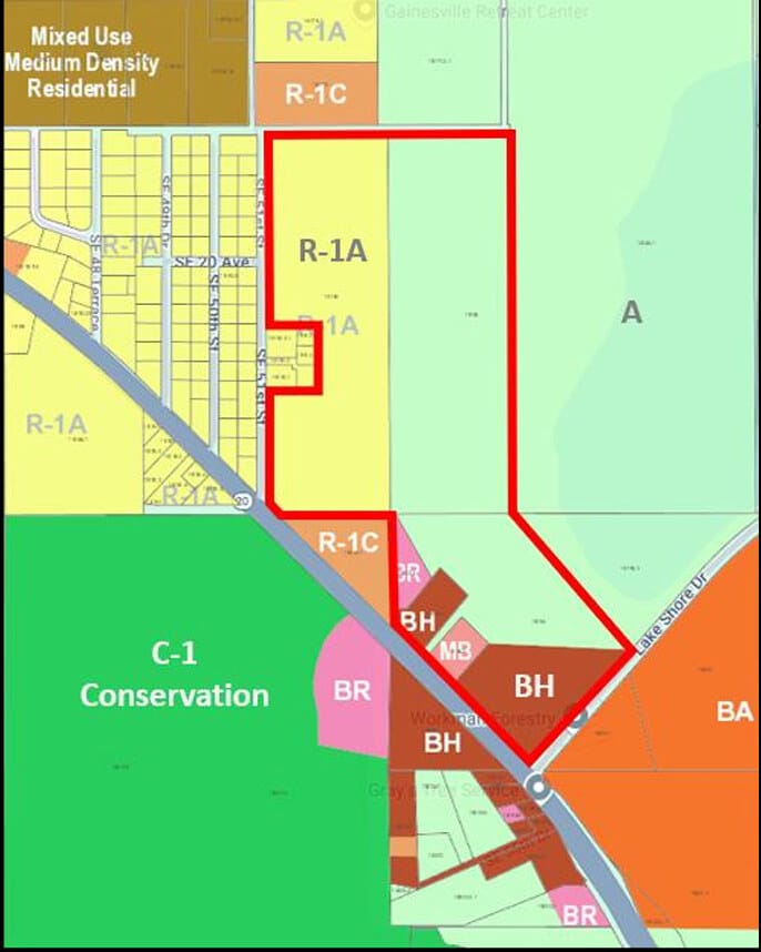 In Alachua County, there’s a proposal to develop a decent chunk of land at the eastern outer edge of the urban cluster into 149 single family homes. Largely because of its demographics, East Gainesville/East Alachua County has historically been neglected by city and county officials and by private developers. But right now, a developer with a good track record of building entry level homes is pushing to build much needed houses in the area. The tradeoff is that the land the company wants to build on is currently wild. However, in the county’s zoning map, this land is not under conservation. Much of it is already zoned for single family houses with the rest zoned for agriculture. A developer could come in and build homes on this land without a public hearing because they would be using the land as it’s intended under the current zoning. This developer wants to use the agriculture land and in exchange, put 26 acres of the land into conservation.